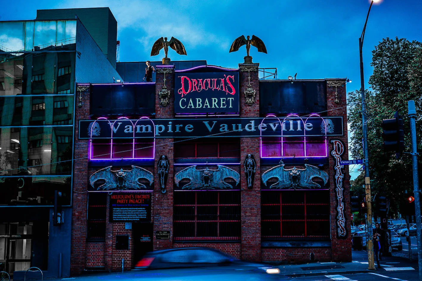 It was a wild experiment but it paid off. Who would have thought that a horror themed comedy venue would be such a scream? Dracula’s first opened in Drewery Lane, hidden in an old warehouse in Melbourne’s back streets. Based on the successful Rocky Horror Picture Show, zany characters and a haunted castle interior thrilled crowds. Outgrowing the original venue, Dracula’s was moved to its Victoria St location in 1990 and became a legendary Melbourne venue.